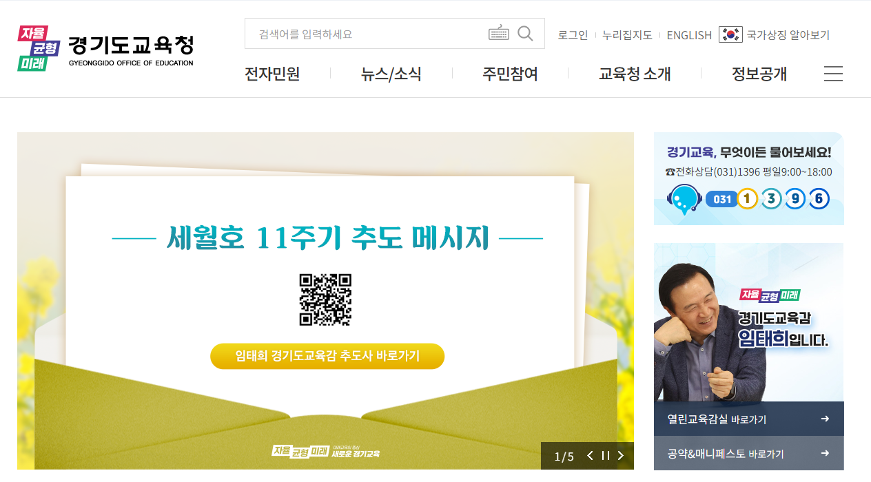 경기도교육청 홈페이지는 경기도 내 유·초·중·고등학교 및 교육기관과 관련된 정보와 민원처리, 정책자료 등을 통합 제공하는 온라인 행정 플랫폼입니다. 민원인과 교육 종사자, 학부모, 학생 모두를 위한 다양한 맞춤형 서비스가 제공되고 있으며, 특히 코로나19 이후 비대면 민원 수요가 늘면서 이용률이 급증하고 있습니다.