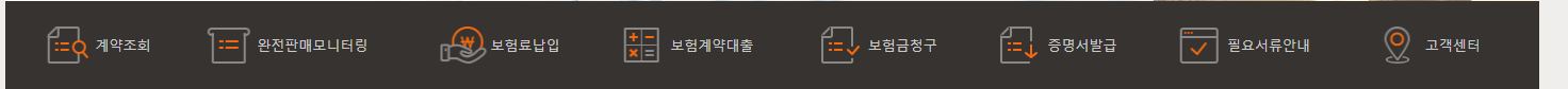 보험금 청구, 계약조회, 증명서 발급, 보험대출 등 기능별로 구분되어 있어 초보자도 쉽게 사용할 수 있습니다.