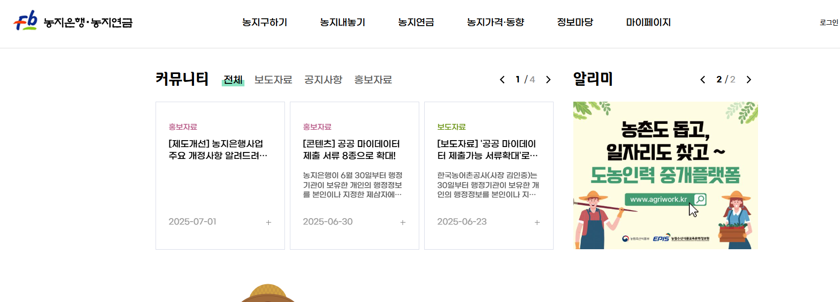 - 농지은행 통합포털 접속