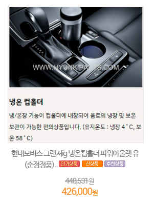 - 현대자동차 공식 부품 공급처로, 전국 현대/기아차 정비소에 공급되는 정품 부품 취급